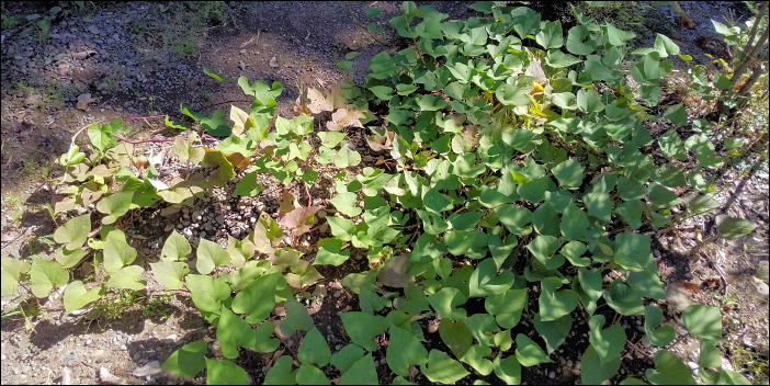 植えてましたが、何も無い部分は草が生えて草取りが大変でした。サツマイモとスイカが葉を広げ